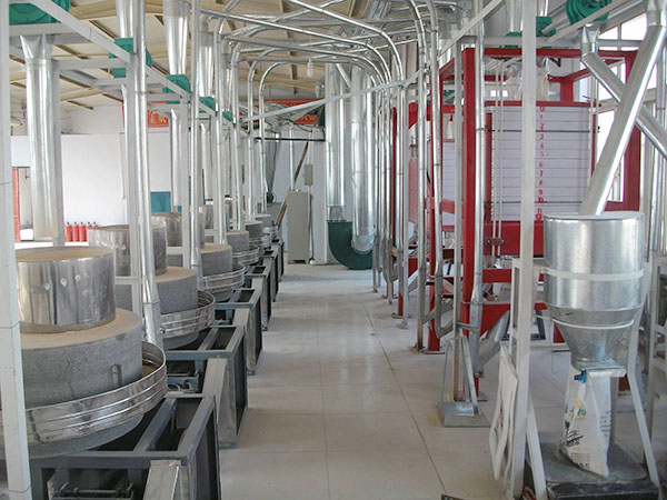 石磨面粉生产工艺:去杂筛理—吸石—洗麦—润麦—脱皮—磨制—分 —包